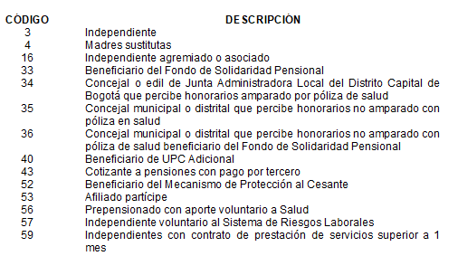 <Códigos modificados por el artículo 4 Num. 7 de la Resolución 261 de 2022. El nuevo texto es el siguiente:>