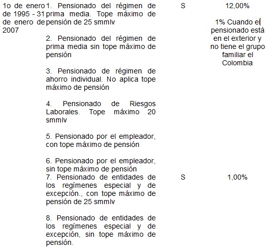Aportes al Sistema General de Seguridad Social en Salud: Corresponde a las cotizaciones que realizan a través de la Planilla Integrada de Liquidación de Aportes (PILA), las personas obligadas a cotizar al Régimen Contributivo, es decir, aquellas vinculadas mediante contrato de trabajo o como servidores públicos; los pensionados; los jubilados; los independientes; los rentistas; los propietarios de las empresas, y en general todas las personas residentes en el país que no tengan vinculo legal y reglamentario con algún empleador y cuyos ingresos mensuales sean iguales o superiores a un salario mínimo mensual legal vigente.
