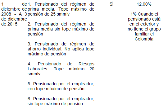 Pensionados: Persona natural que le han otorgado una pensión por jubilación, vejez, invalidez, sustitución o sobrevivientes de los sectores público, oficial, semioficial o privado en todos los órdenes del Régimen de Prima Media con Prestación Definida o del Régimen de Ahorro Individual con Solidaridad.