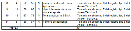 2.8.1 Estructura de datos del registro de salida tipo 8. Total de aportes del período para el SENA