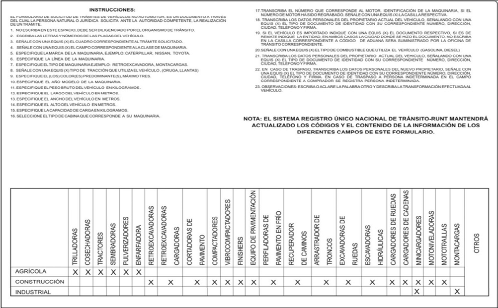REGISTRO NACIONAL MAQUINARIA AGRÍCOLA, INDUSTRIAL Y DE CONSTRUCCIÓN AUTOPROPULSADA.