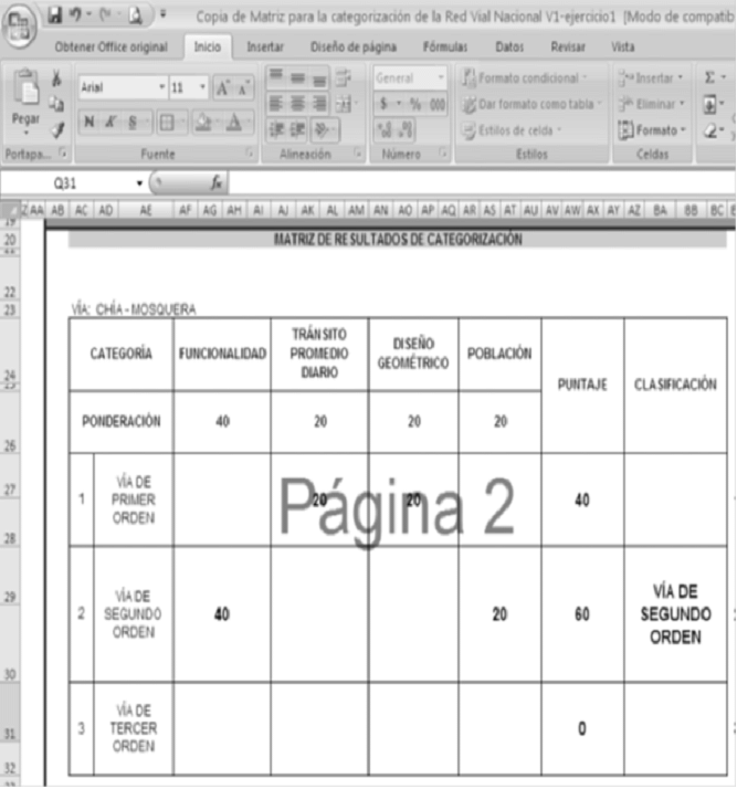 6.6. Después de seguir los pasos del 6.1 al 6.5, la matriz le indicará a qué categoría corresponde la vía.