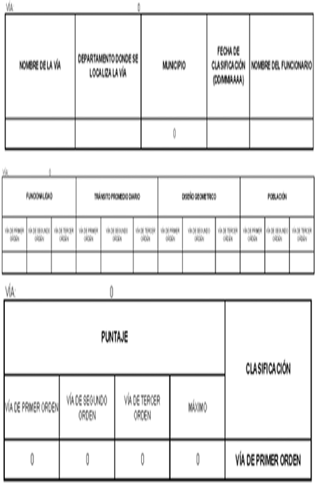 | NOMBRE DE LA VÍA | DEPARTAMENTO DONDE SE LOCALIZA LA VÍA | MUNICIPIO | FECHA DE CLASIFICA- CIÓN (DD/MM/AAAA) | NOMBRE DEL FUNCIONARIO | ||