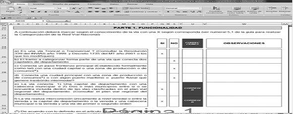 6.2. Haga clic en la celda SÍ o NO y luego marque con una “X” en la celda según corresponda de acuerdo a la funcionalidad de la vía.