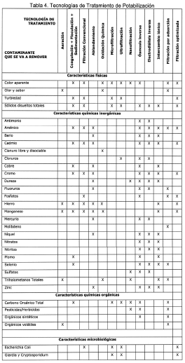 “Artículo 109. Tipos y procesos unitarios de potabilización. Para aguas provenientes de fuentes de abastecimiento superficiales o subterráneas, las opciones de selección de los procesos unitarios que se van a diseñar, construir y operar, deben tener en cuenta los contaminantes presentes en ellas. Se deberá estudiar y evaluar la configuración del tren de procesos seleccionado para garantizar los estándares de calidad de agua para consumo humano, según la normativa vigente con las más altas eficiencias operativas, de acuerdo con las tecnologías planteadas en la Tabla 4.