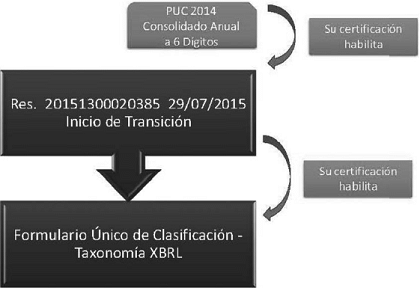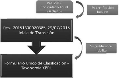 - Si la fecha de inicio de operaciones registrada en el RUPS, es posterior al 31 de diciembre de 2014, se habilitará automáticamente la taxonomía que le corresponda en XBRL al momento de certificar el Formulario único de clasificación, como se explica en el anexo técnico de la presente resolución.