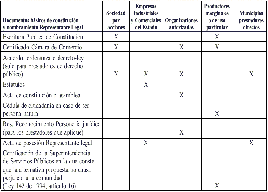 1.1 Documentos básicos. Aplican para todos los prestadores de servicios públicos domiciliarios de acueducto, alcantarillado, aseo, energía eléctrica, telefonía, gas natural y gas licuado del petróleo-GLP, y se debe adjuntar como mínimo uno de los siguientes documentos de constitución y de posesión o nombramiento del representante legal que apliquen de acuerdo con la naturaleza delprestador.