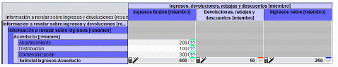 Para los servicios de: Acueducto, Alcantarillado y Aseo, el valor de las devoluciones, rebajas y descuentos, se deben registrar en el subtotal de la columna identificada con el mismo nombre; los ingresos netos serán la diferencia entre el valor de los ingresos brutos menos los descuentos rebajas y devoluciones, por ejemplo: