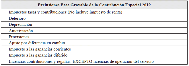 Por la cual se establece el monto de la tarifa de la contribución especial, la base gravable de liquidación y el procedimiento para el recaudo al cual se encuentran sujetos los prestadores de servicios públicos domiciliarios para el año 2019, y se dictan otras disposiciones.