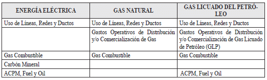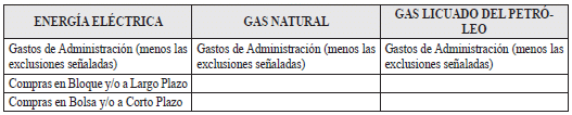 Para Energía Eléctrica, Gas Natural y Gas Licuado del Petróleo