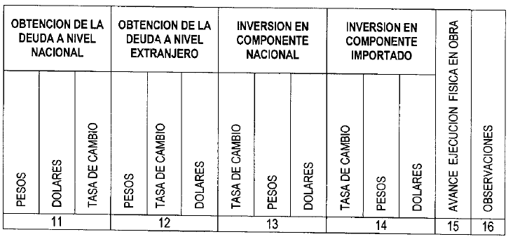 - Pesos: Si en la ejecución el valor de la inversión realizada en componentes extranjeros está dada en pesos colombianos. El diligenciamiento de este campo corresponde a un valor numérico entero (sin decimales).