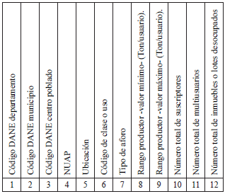6. Código de clase o uso. Corresponde a la clasificación definida para los tipos de suscriptor residencial y no residencial, para lo cual se debe seguir la siguiente estructura:
