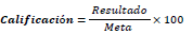 Columna 7: Calificación. corresponde al porcentaje de cumplimiento de la meta planteada para el periodo de evaluación. Su calificación se encontrará entre 0% y 100%, de acuerdo con su cumplimiento, si el resultado de la fórmula supera el 100%, se acotará a 100%.