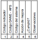 Columna 2: Código DANE-APS. Corresponde a la codificación dada por el DANE a la división político-administrativa de Colombia. Con la siguiente estructura: DDMMMCCC, donde "DD" es el código del departamento, "MMM" corresponde al código del municipio y "CCC" corresponde al código del centro poblado. Para los casos en que no aplique el centro poblado, se debe diligenciar 000. Se aclara que el Código DANE que identifica a un municipio debe estar asociado a cada área de prestación del servicio– APS reportada y se validará con lo reportado en el Tablero de Acciones de Mejora del año en evaluación reportado al SUI.
