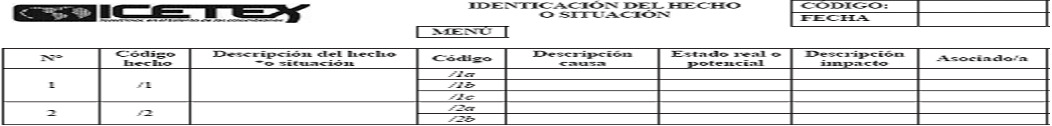 Para identificar los hechos o situaciones que pueden afectar la debida atención y protección de los consumidores financieros, Icetex utiliza la matriz de Identificación del Hecho o Situación, a continuación se detalla dicha matriz: