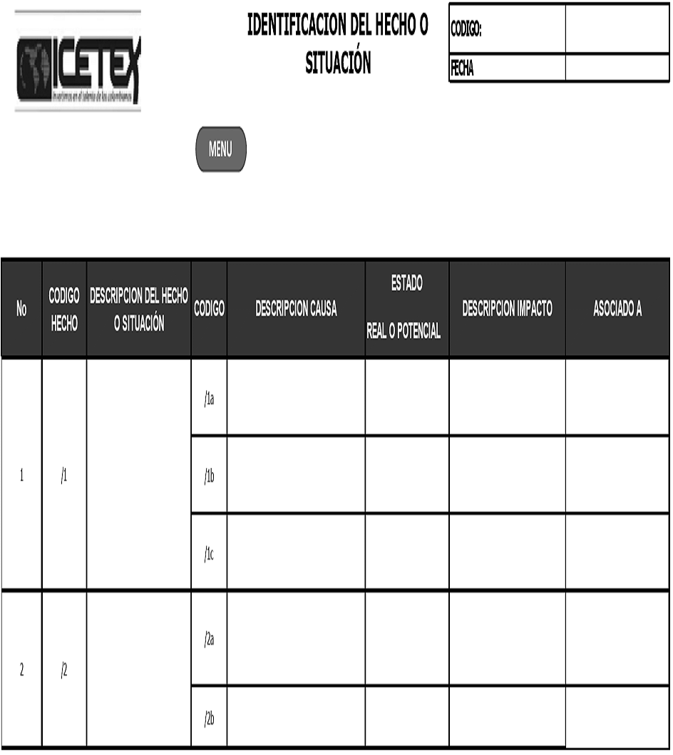 Para identificar los hechos o situaciones que pueden afectar la debida atención y protección de los consumidores financieros, Icetex utiliza la matriz de Identificación del Hecho o Situación, a continuación se detalla dicha matriz: