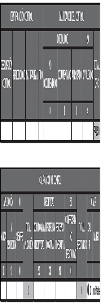 Así mismo, cada control implementado se califica a partir de tres atributos, oficialidad, aplicación y efectividad; a su vez, cada control se sitúa en un nivel dentro de cada atributo lo que permite su calificación, los niveles son: