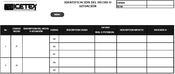 Para identificar los hechos o situaciones que pueden afectar la debida atención y protección de los consumidores financieros, Icetex utiliza la matriz de Identificación del Hecho o Situación, a continuación se detalla dicha matriz: