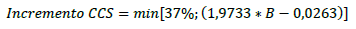 | Porcentaje en el que se incrementa el CCS cuando en un municipio se preste la actividad de aprovechamiento. Cuando la variable Qea sea igual cero, el valor del Incremento CCS será cero. | |