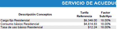 En este sentido, para el servicio de acueducto en el distrito de Barranquilla los valores de $9.349,16 en el cargo fijo, $4.814.83 en el cargo por consumo corresponden a la tarifa de los usuarios del estrato 4 y el uso oficial; pero a su vez coinciden con los costos económicos de referencia que aplica para todos los demás usuarios.