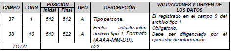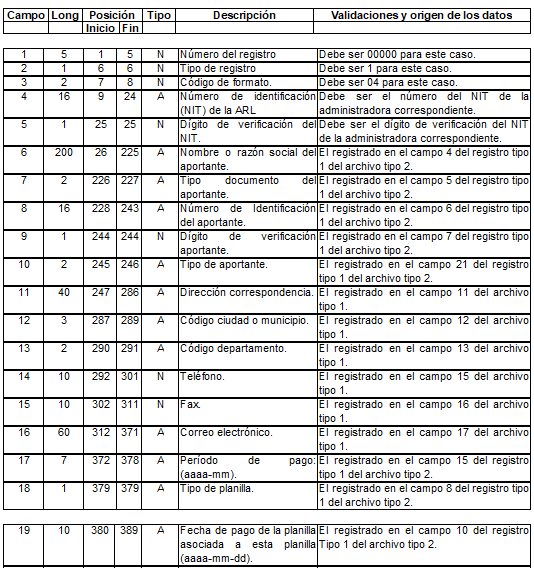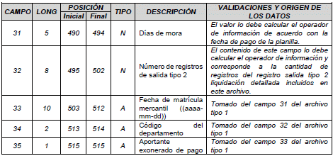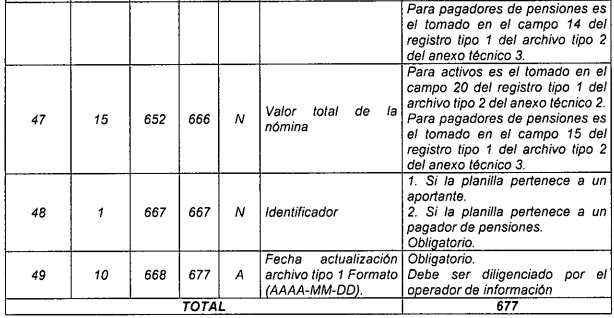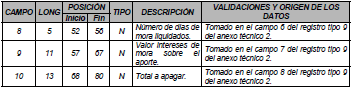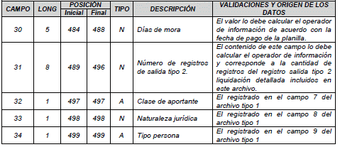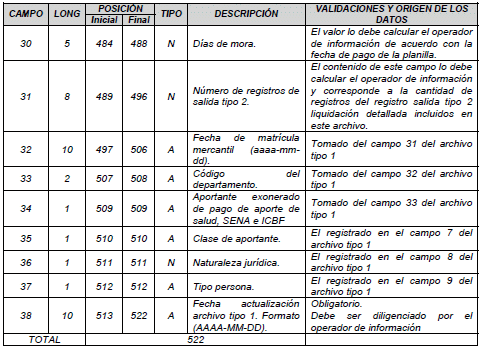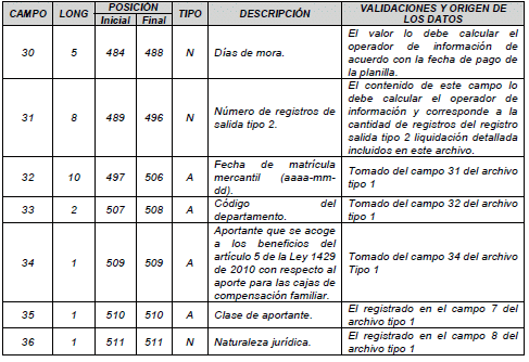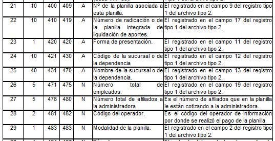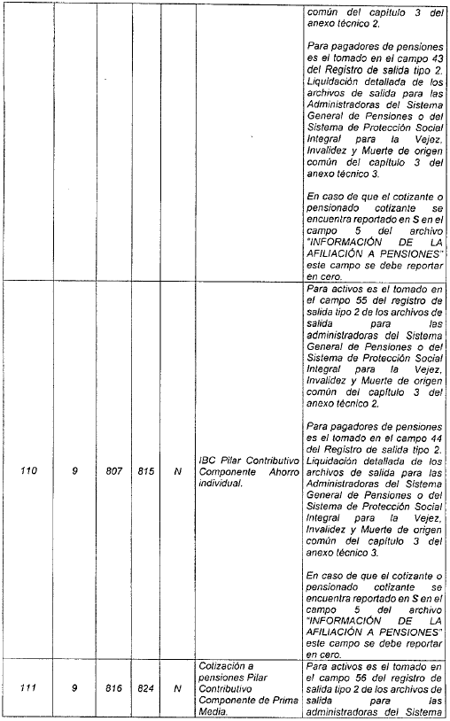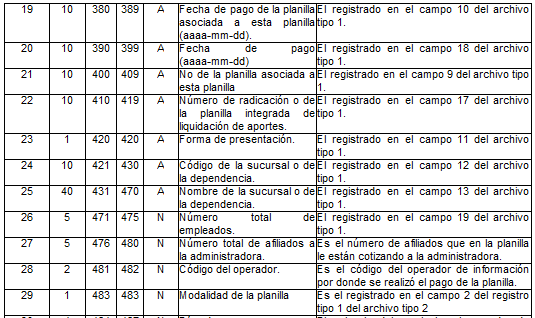 3 2 10 11 N Código del operador Para activos es el tomado en el campo 28 del archivo tipo 1 del anexo técnico 2. Para pagadores de pensiones es el tomado en el campo 25 del archivo tipo 1 del anexo técnico 3.