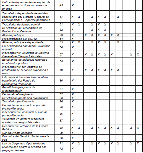 Aportes al Sistema General de Pensiones: <Ver Notas de Vigencia por suspensión. Consultar texto aplicable en Legislación Anterior> <Acápite modificado por el artículo 1 de la Resolución 467 de 2025. El nuevo texto es el siguiente:>  Corresponde a las cotizaciones que realizan a través de la Planilla Integrada de Liquidación de Aportes - PILA, las personas que se encuentran vinculadas mediante contrato de trabajo o como servidores públicos; los contratistas; los independientes con ingresos netos iguales o superiores a un salario mínimo mensual legal vigente; los pensionados con pensión de jubilación para compartir y con pensión convencional para compartir mientras reúnen los requisitos para la pensión de vejez; a las cuales les aplique el régimen de transición de que trata el artículo 75 de la Ley 2381 de 2024.