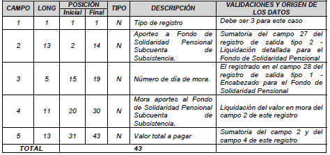6153751NTotal a pagar al Fondo de Solidaridad Pensional.Para activos es el tomado en el campo 3 del registro tipo 12 del Anexo Técnico 2.