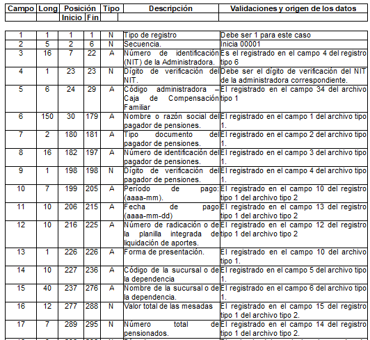 Para pagadores de pensiones es el tomado en el campo 6 del registro tipo 7 del Anexo Técnico 3.