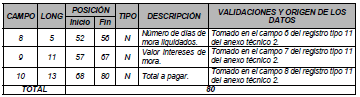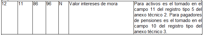 9115666NValor intereses de mora.Tomado en el campo 7 del registro tipo 11 del Anexo Técnico 2.