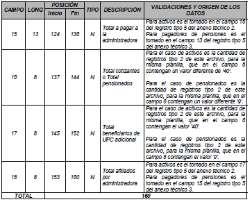 178188195NTotal Beneficiarios UPC adicionalSumatoria de los campos 17 de los registros tipo 5 de esta planilla.