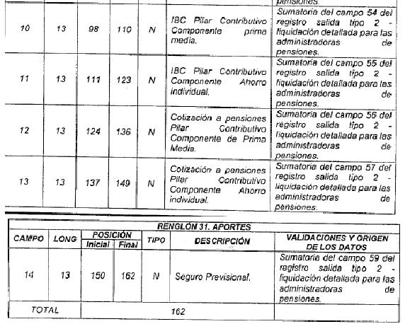 5152236NTotal a pagar a pensiones.Para activos es el tomado en el campo 2 del registro tipo 12 del Anexo Técnico 2.