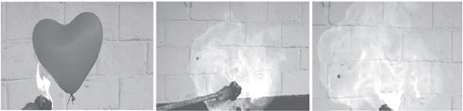 -- Videos en los que se demuestra la reacción ante una llama de un globo inflado con Hidrógeno y otro inflado con helio, CD folio 155.